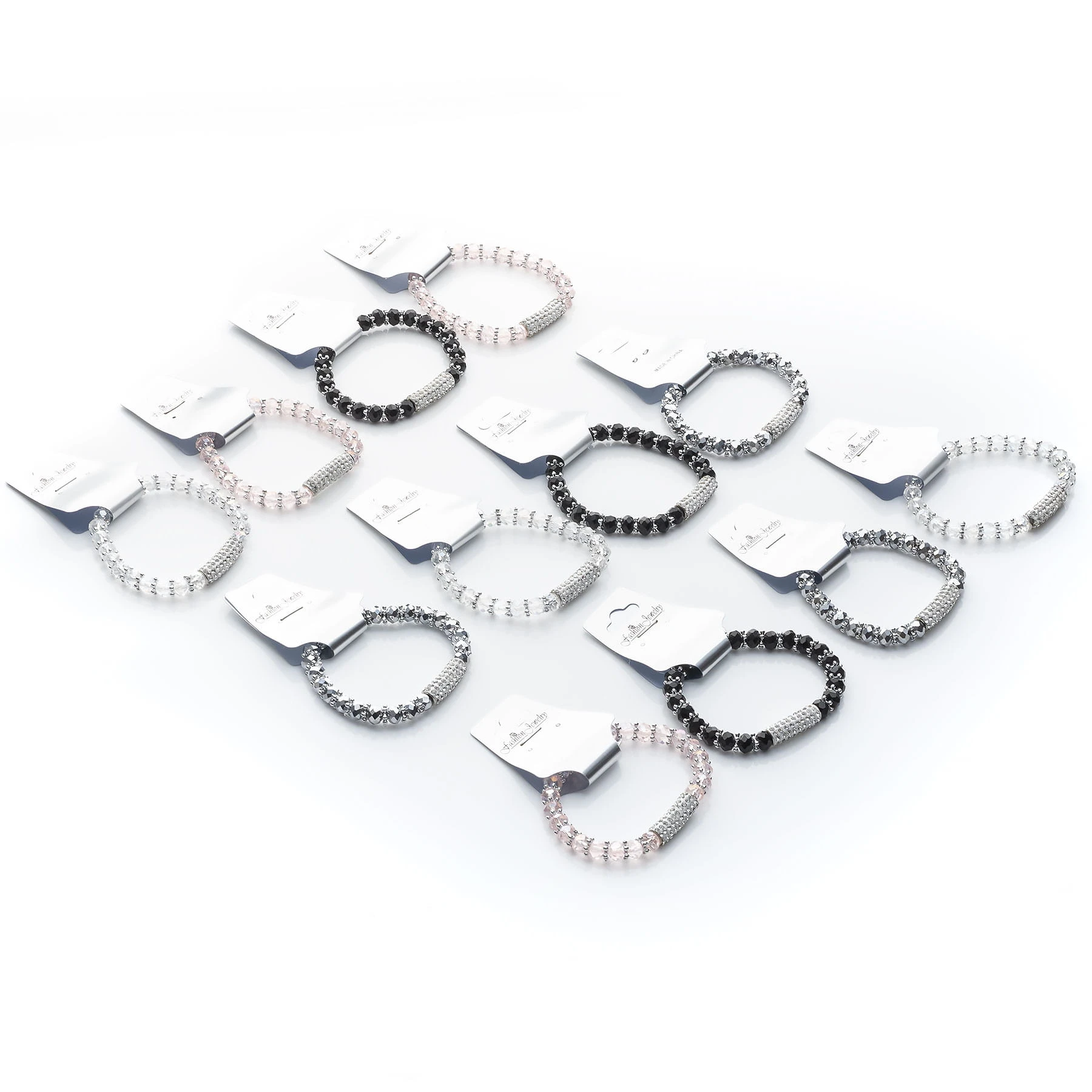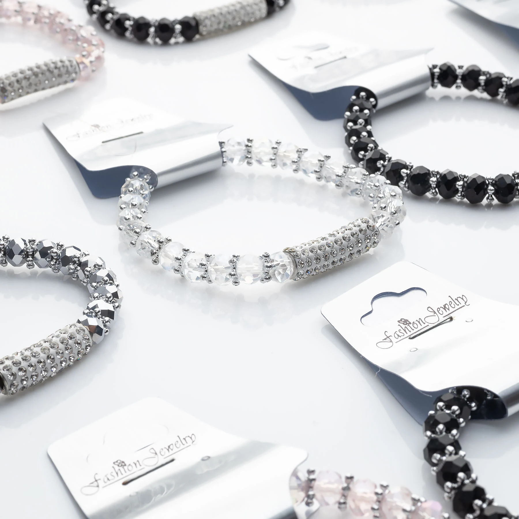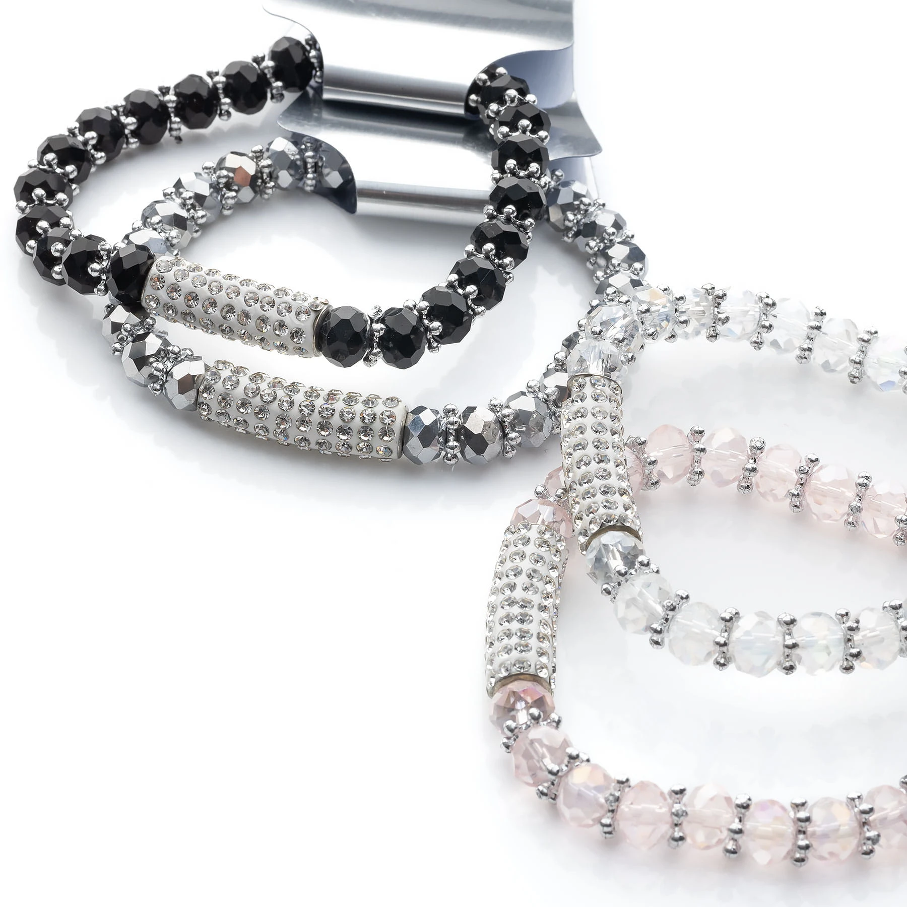 wzór: bransoletka kryształki na gumce z dżetowa ozdobą