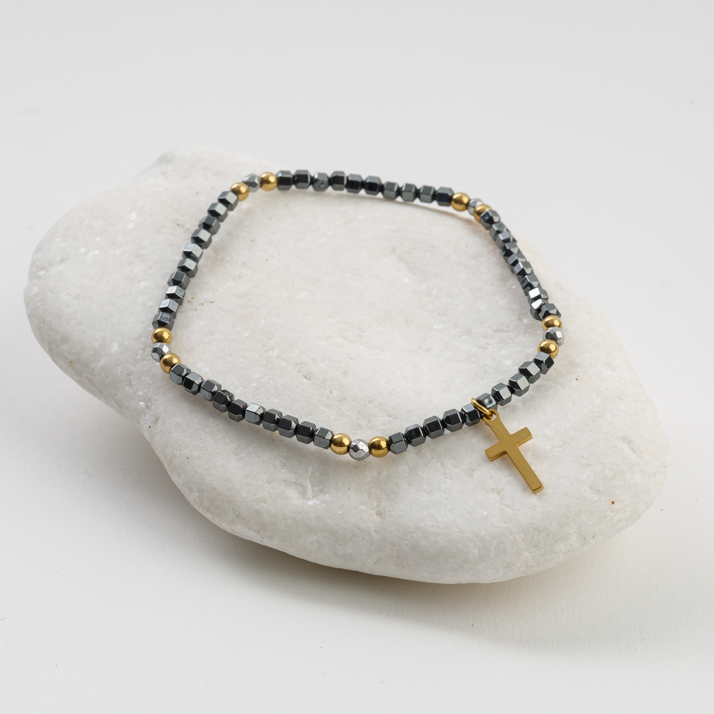 wzór: koraliki z krzyżykiem ze stali nierdzewnej