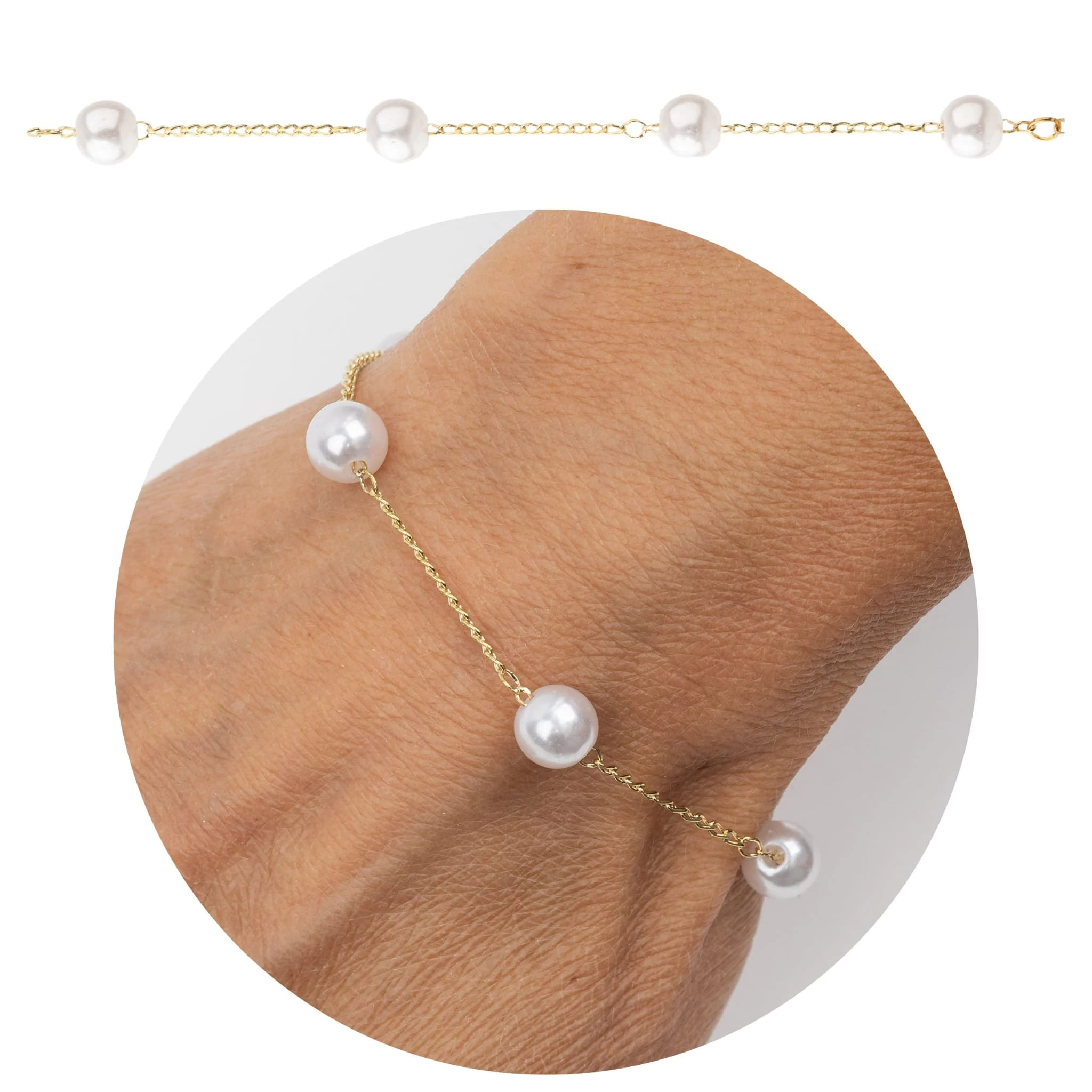 wzór: bransoletka łańcuszkowa typu celebrytka z perełkami