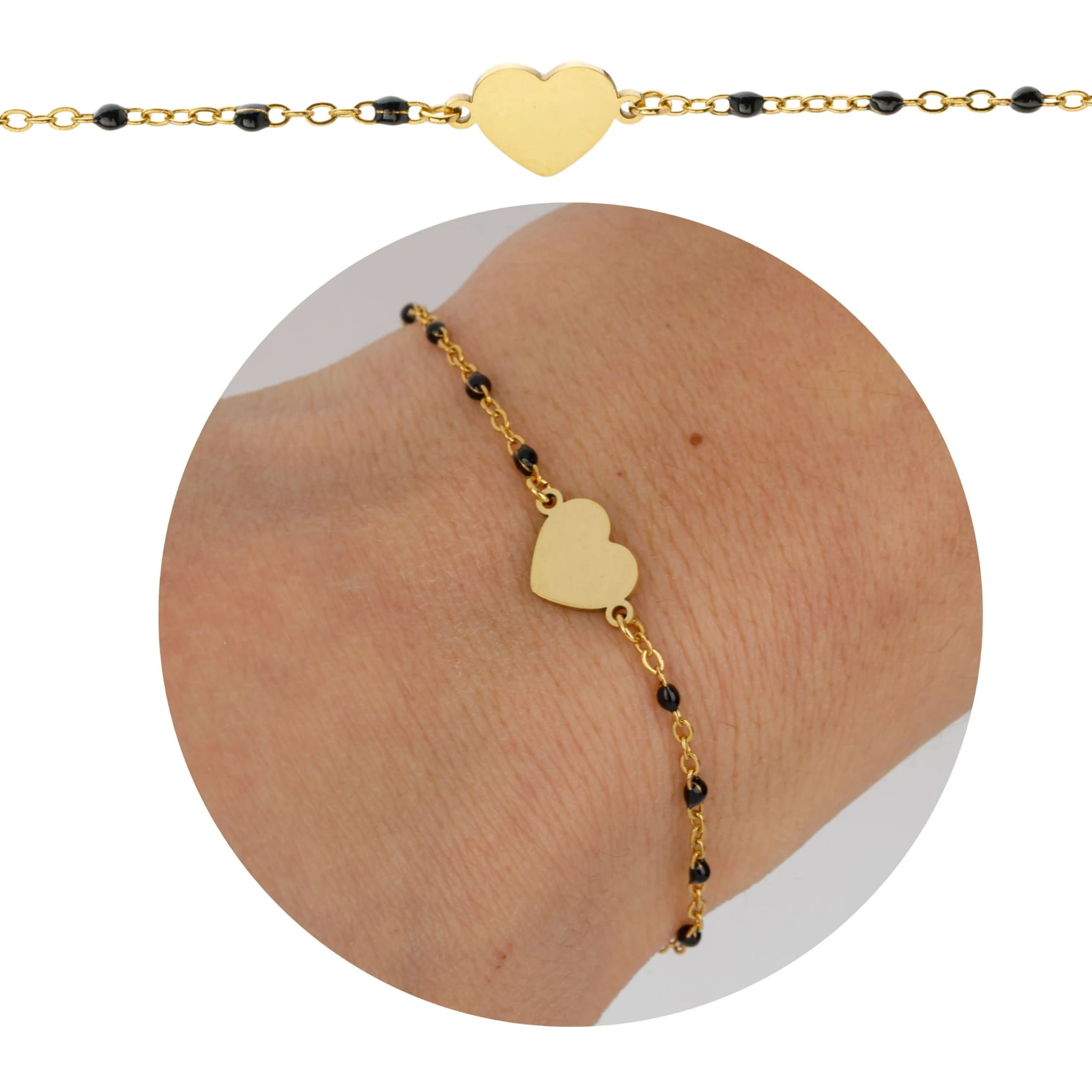 wzór: łańcuszek z koralikami i sercem ze stali nierdzewnej