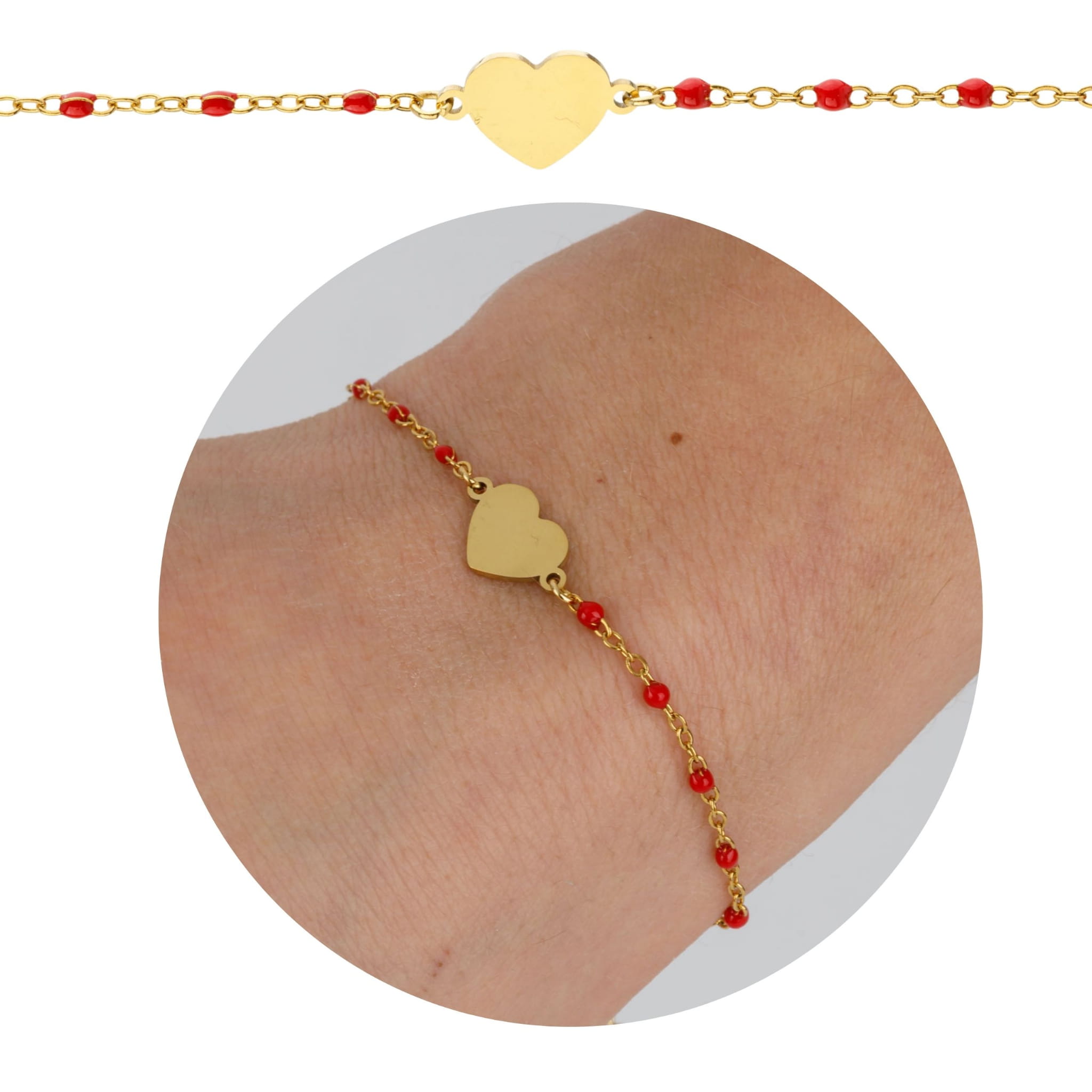 wzór: łańcuszek z koralikami i sercem ze stali nierdzewnej