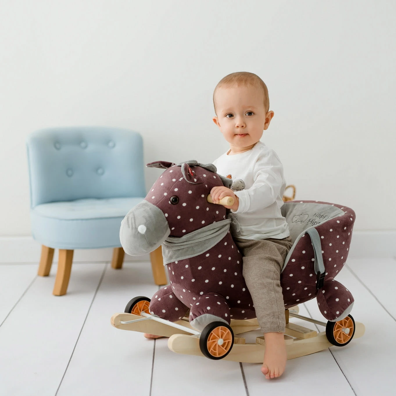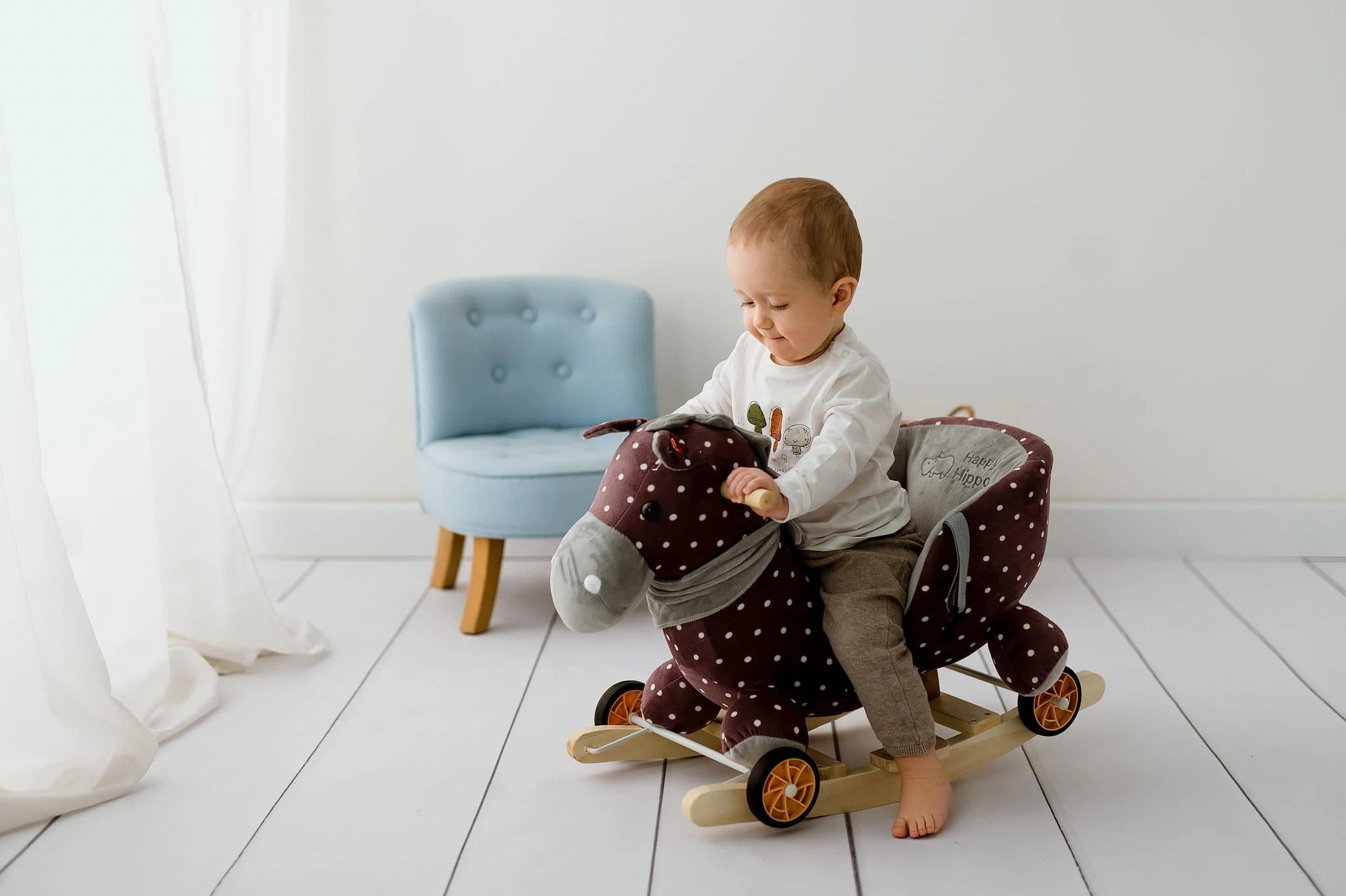 Nasz konik poza słodkim wyglądem który od razu pokocha Twój maluszek jest niezwykle funkcjonalną i bezpieczną zabawką. Jednym prostym ruchem zamienimy bujaczek w jeździk na kołach.