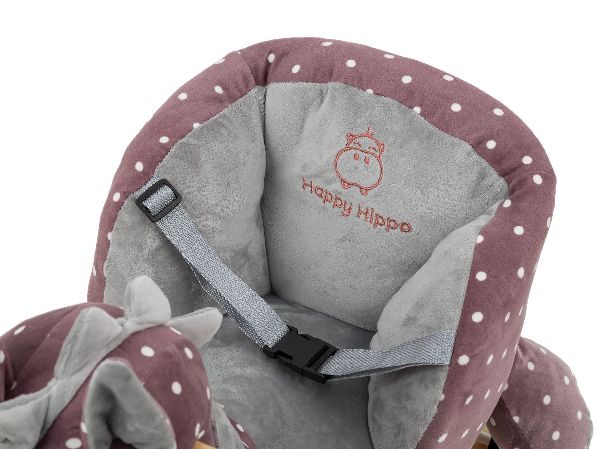 Bujaczek wyposażony jest w wygodne i szerokie siedzisko wraz z wysokim oparciem co uniemożliwia przechylenie się dziecka do tyłu. Dodatkowo wyposażyliśmy bujak w pasy bezpieczeństwa