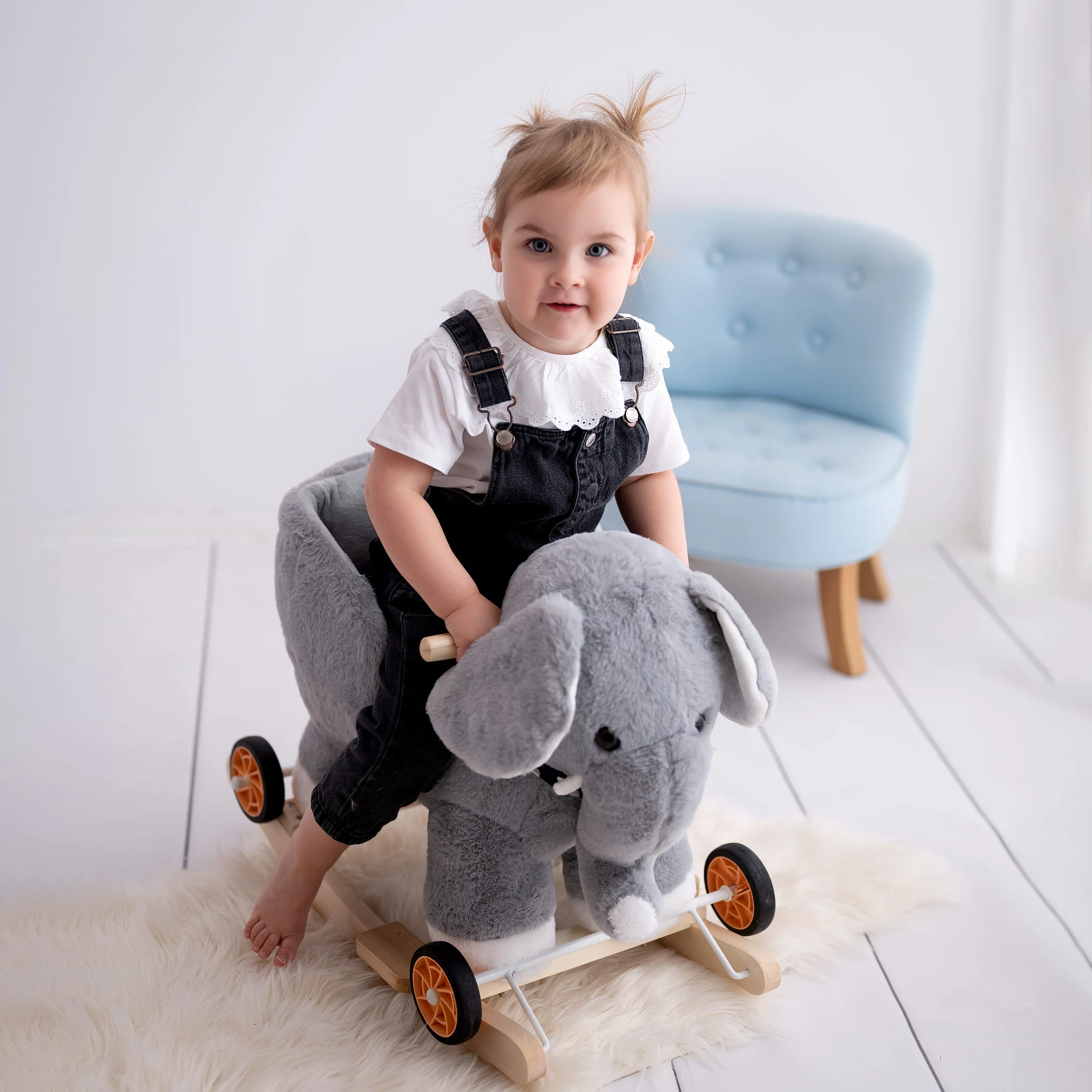 Idealny prezent dla Twojego malucha. Bujaczki są pierwszym wyborem rodziców spośród wszystkich zabawek ruchowych. Bujaczek - jeździk jest bezpieczniejszy od tradycyjnego konia na biegunach ze względu na podparcie dla plecków dziecka oraz pasom bezpieczeństwa uniemożliwiającym upadek w trakcie zabawy. Bujaczek w kształcie słonika wygląda wspaniale i jest taaaki mięciutki w dotyku;-)