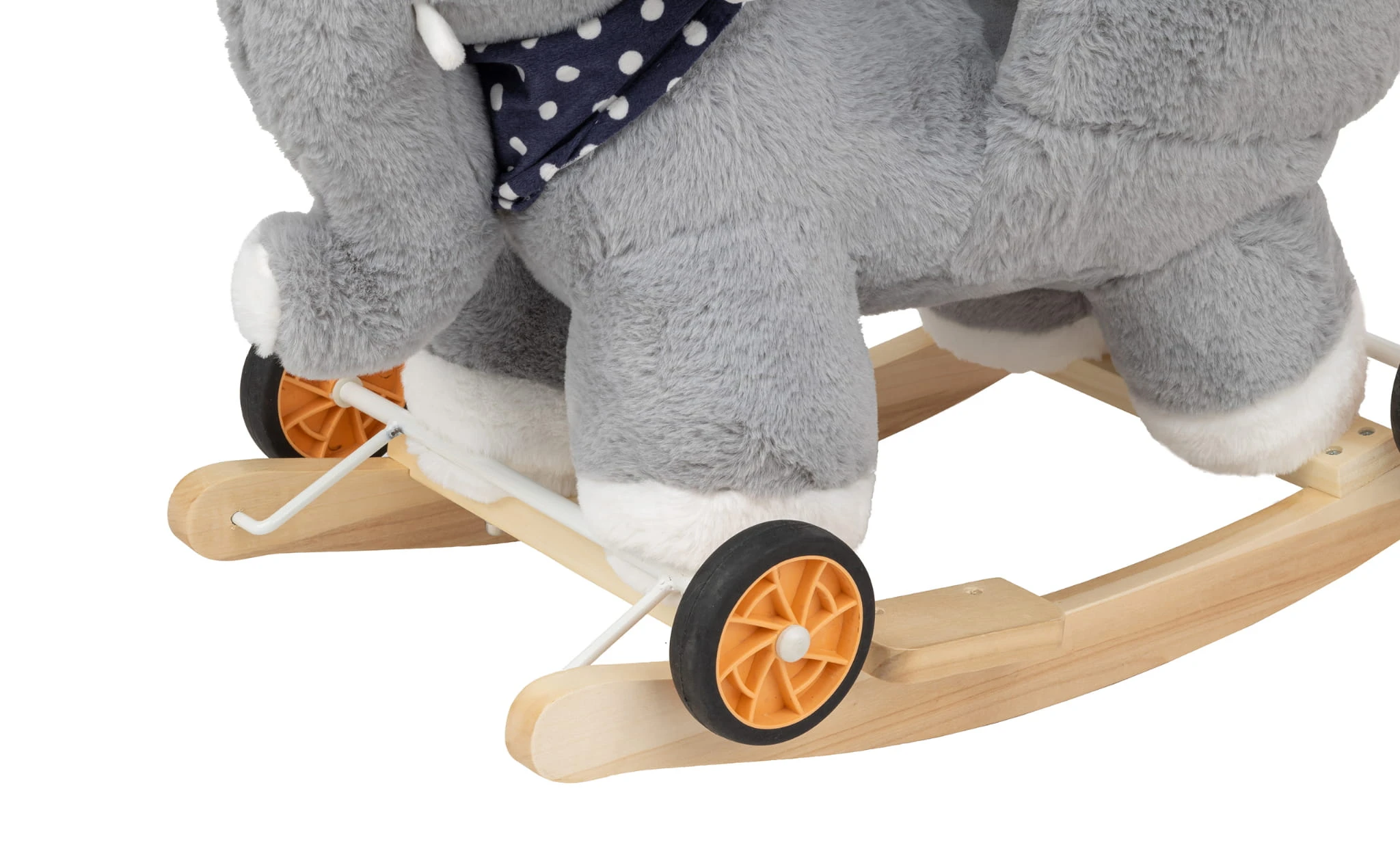 Płozy bujaka są delikatnie wyprofilowane - tak aby uniknąć nadmiernemu rozbujaniu przez dziecko i zapobiec upadkowi malucha. Koła pokryte są teraz kauczukiem. Dzięki temu bujaczek jest cichy w trakcie jazdy i nie rysuje drewnianych podłóg
