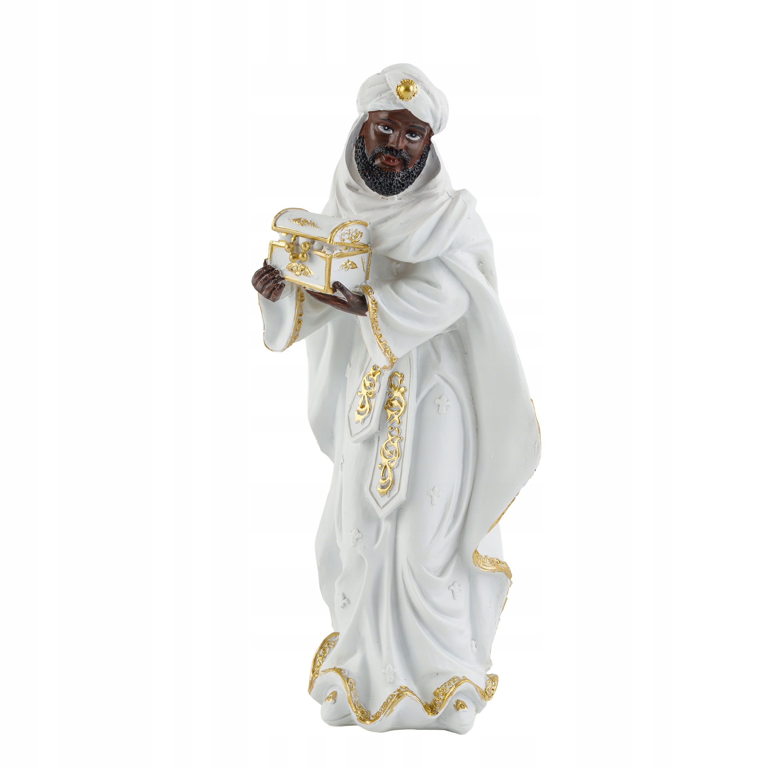 Każda figurka została zaprojektowana z dbałością o najmniejsze szczegóły: delikatne rysy twarzy, realistyczne fałdy szat i subtelne, złote zdobienia nadają zestawowi wyjątkowy charakter.