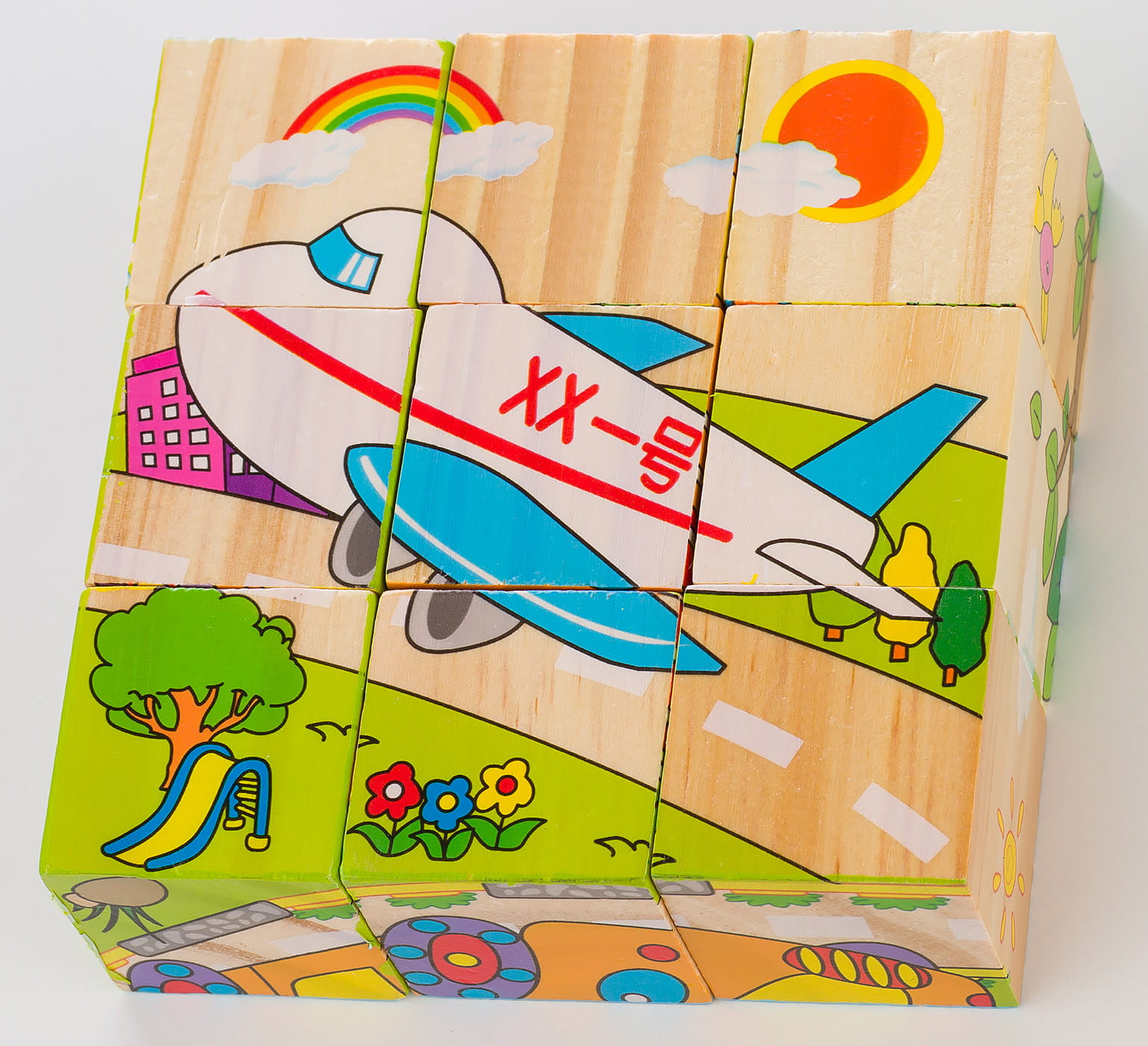 zestaw zawiera 9 klocków 3,5cm x 3.5cm