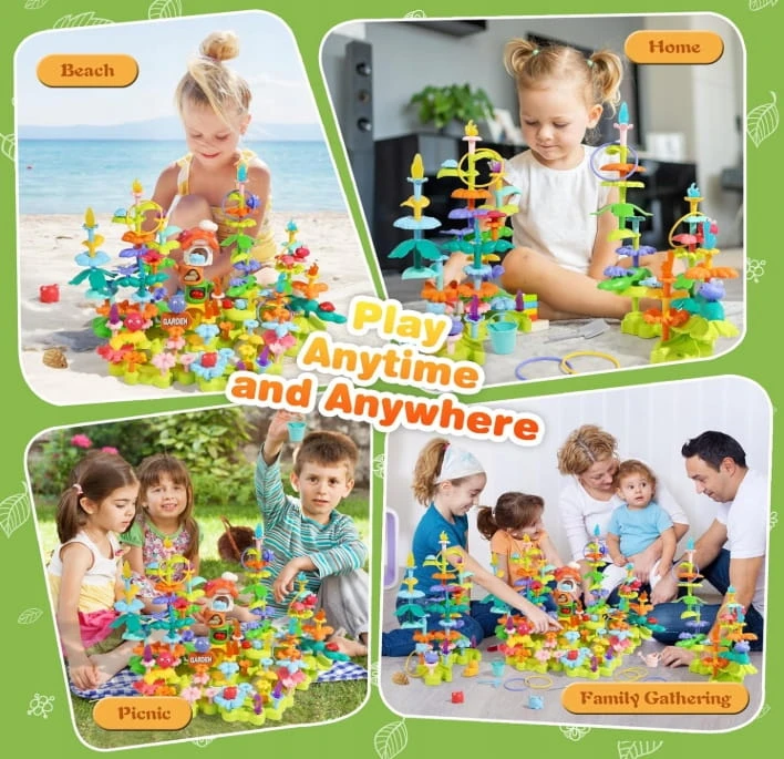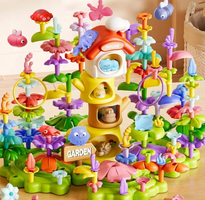 Wzór: klocki konstrukcyjne las kwiaty ogród 120el.