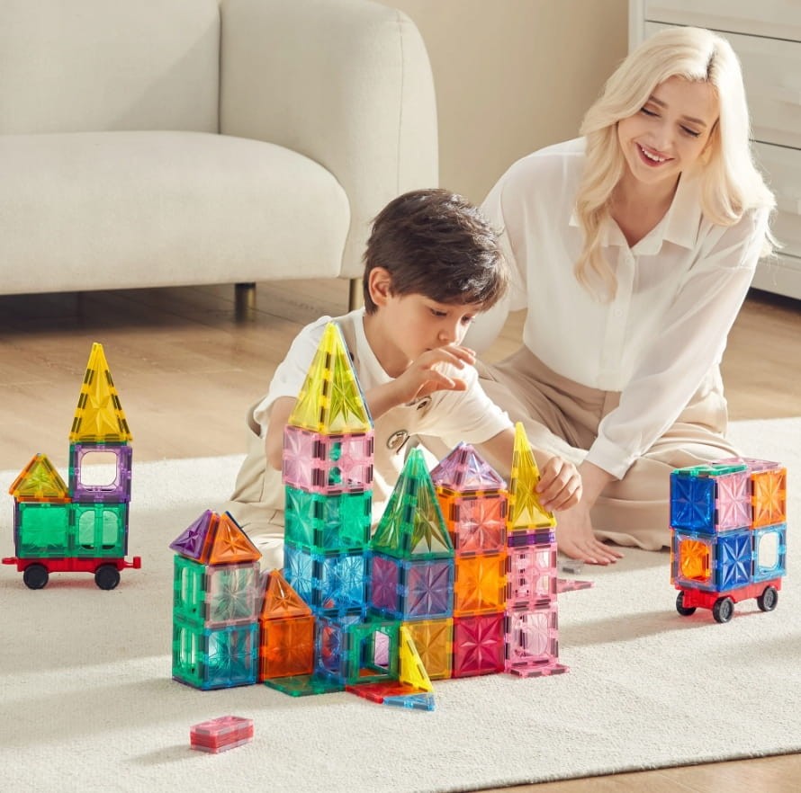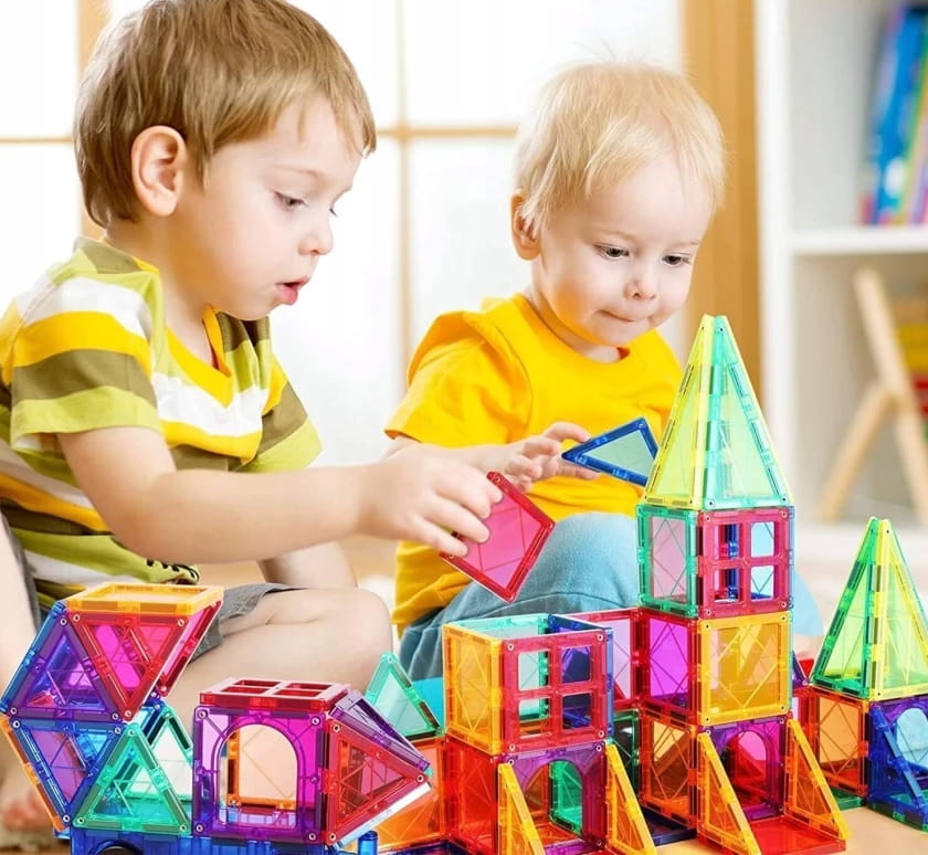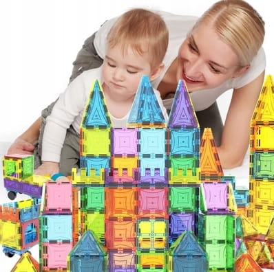 - 168 magnetycznych klocków – różne kształty i kolory
