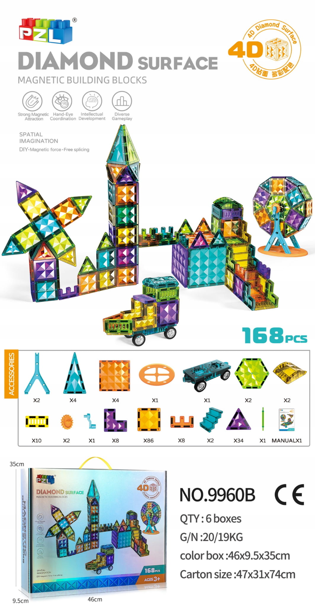 Klocki magnetyczna Diamond 4D Surface 168 el.9960B