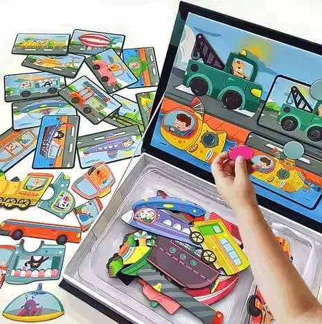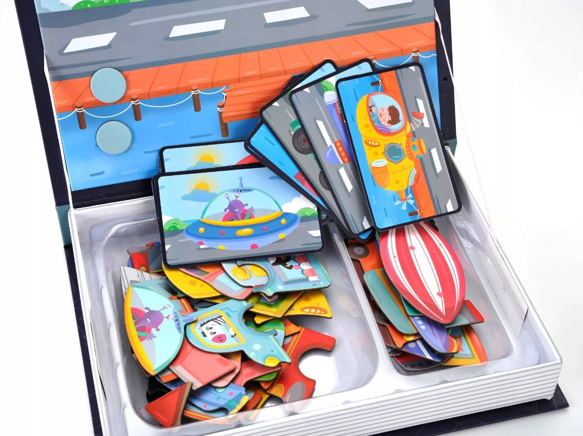Książka układanka magnetyczna puzzle 71el. pojazdy 8726-43