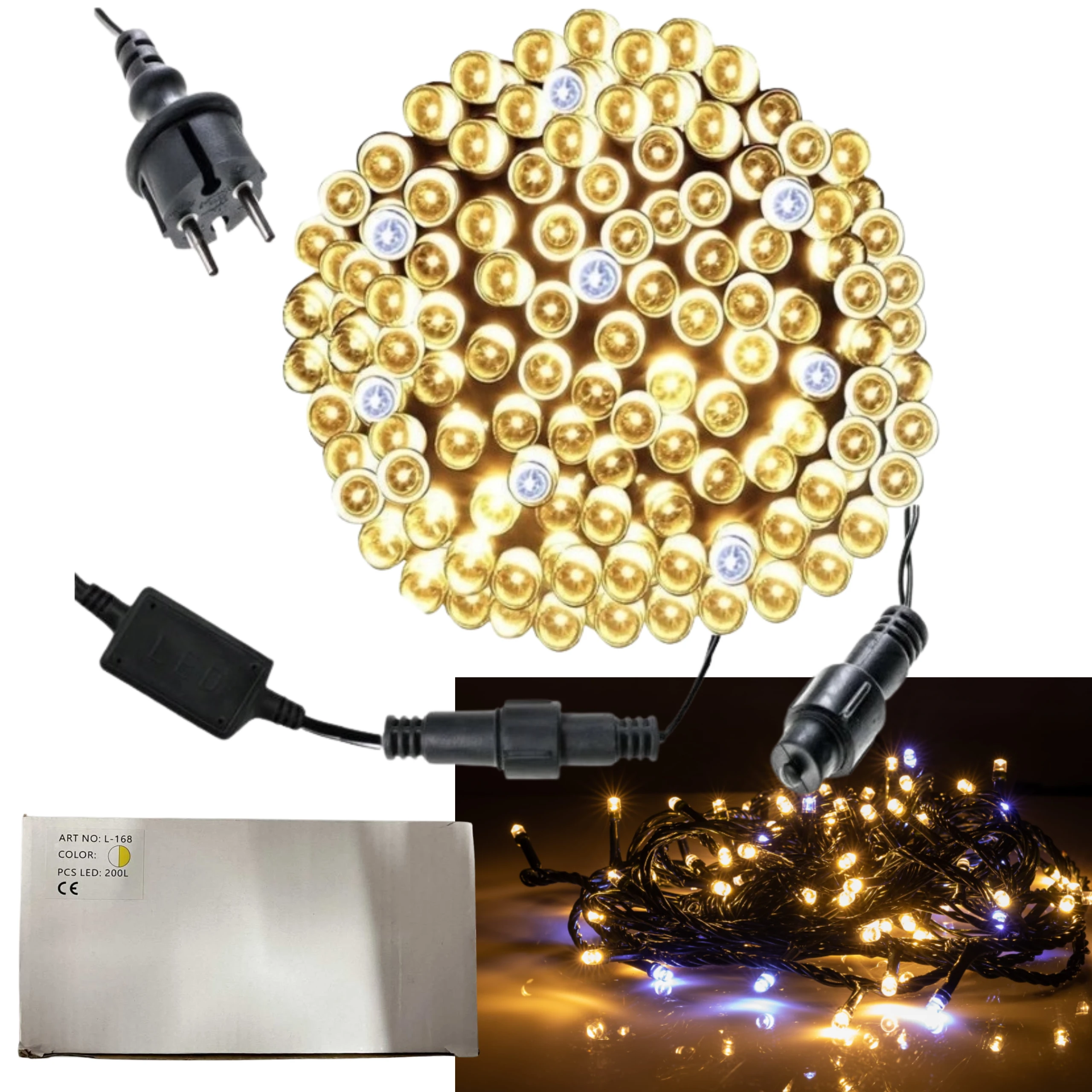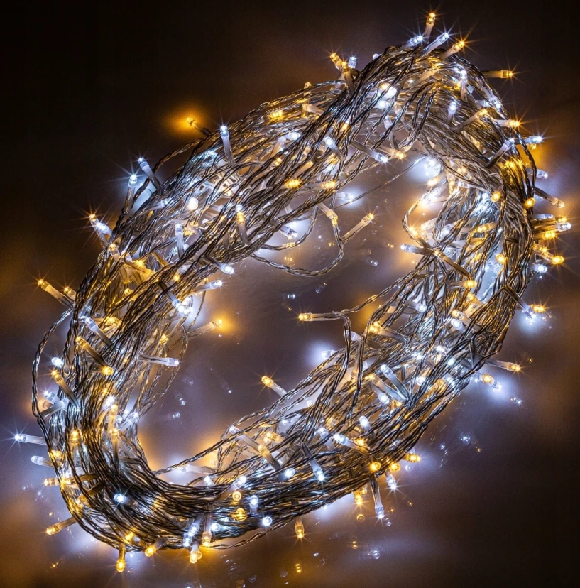 Lampki choinkowe zewnętrzne na grubym kablu 200 LED ciepły/biały L-168-BC
