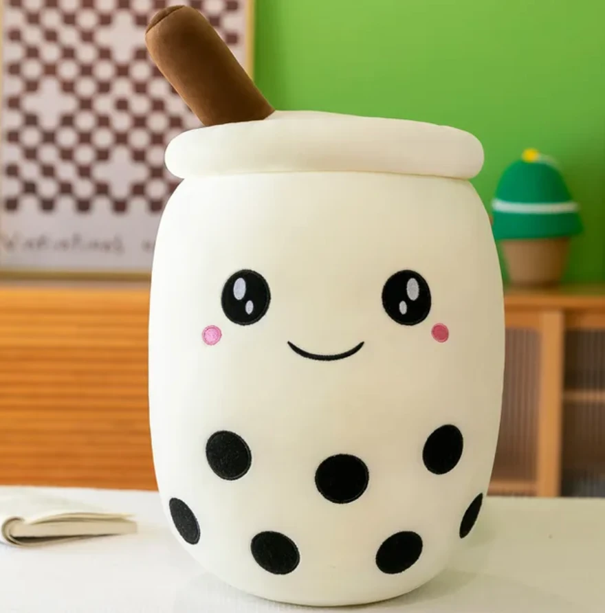 Przytulanka w kształcie uśmiechniętego, przyjaznego kubka Bubble Tea.