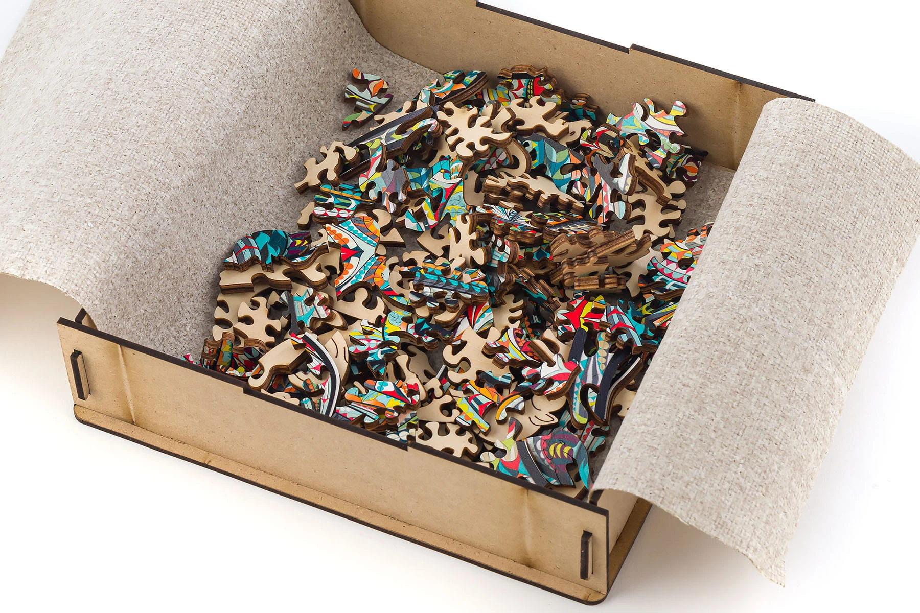 - drewniane pudełko z jutowym papierem