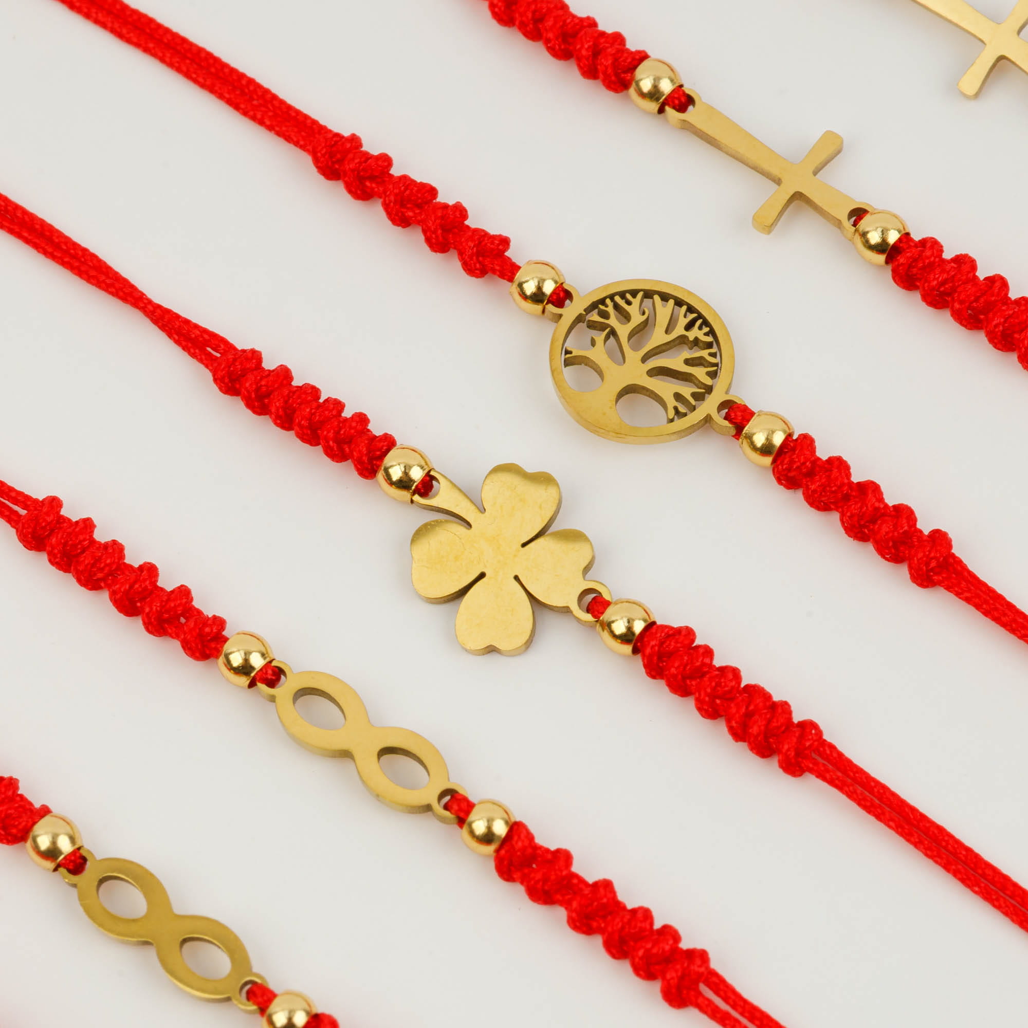 wzór: bransoletka pleciony sznureczek z ozdobą ze stali nierdzewnej