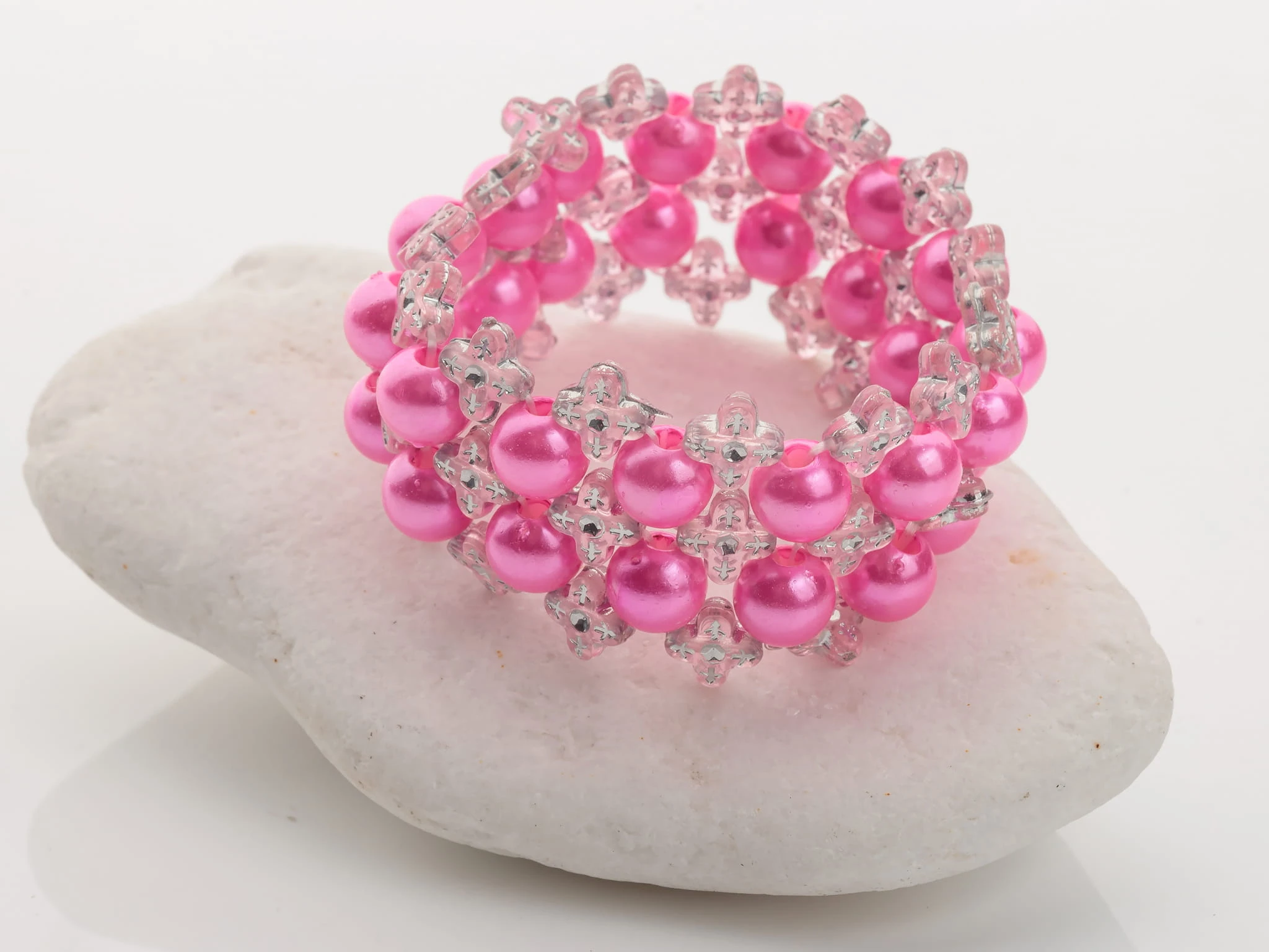 wzór: bransoletka dwurzędowa z kolorowych perełek na gumce