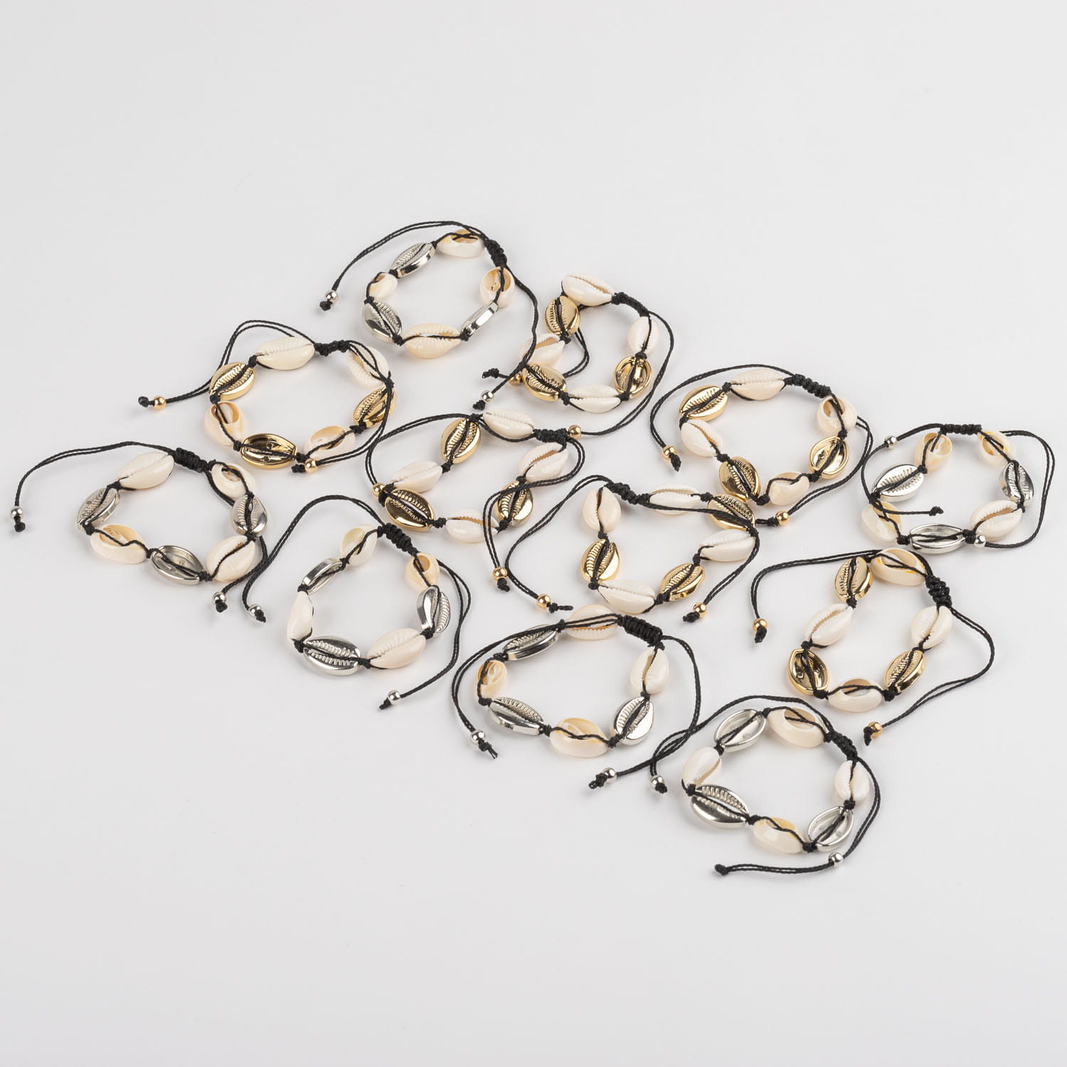 Zestaw bransoletek muszelka na sznurku 12 szt B-1469