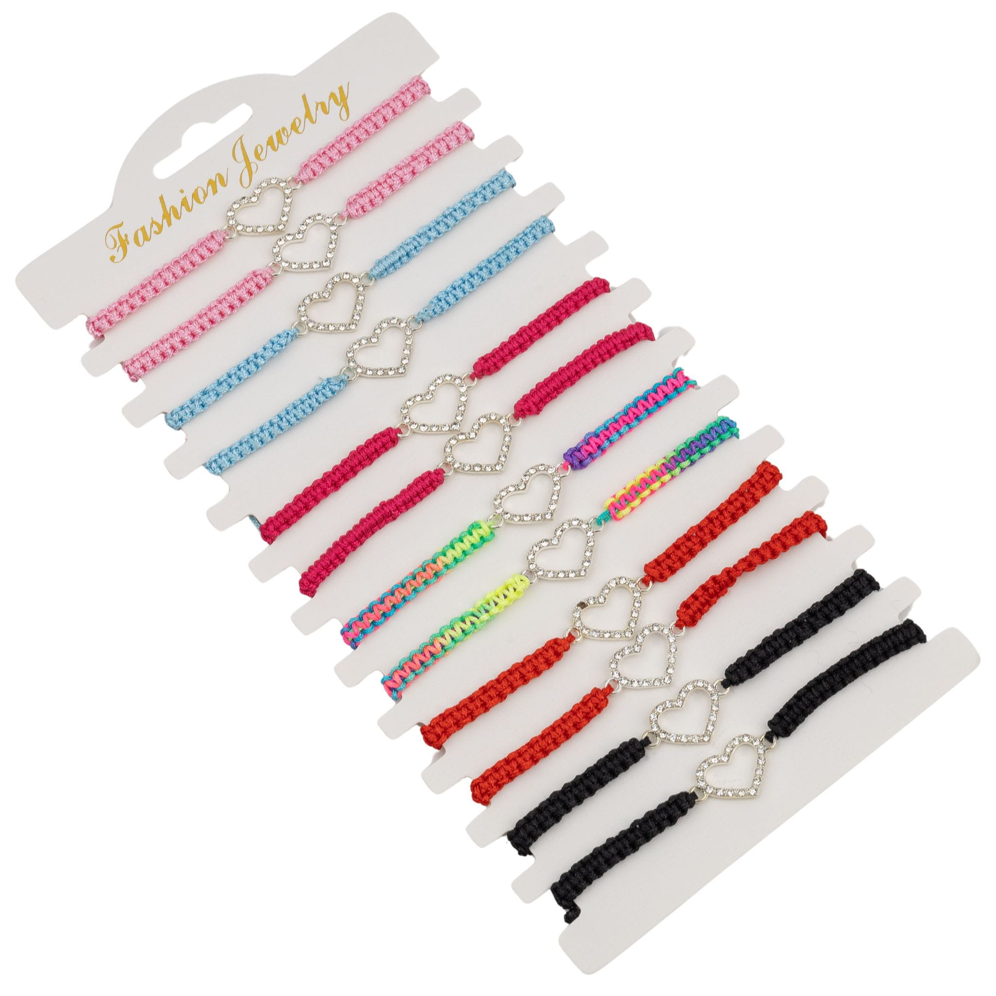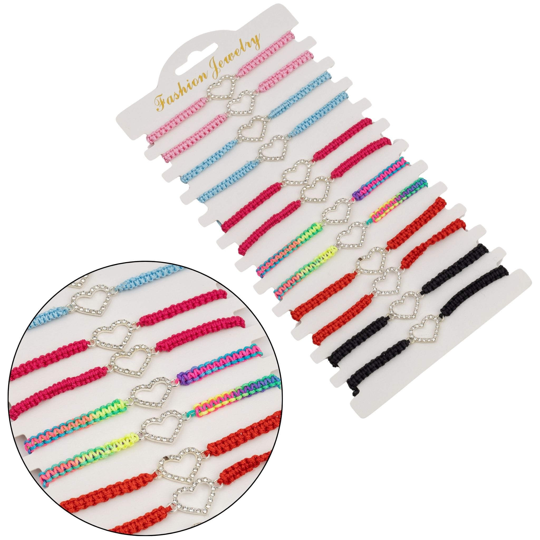 Zestaw bransoletek plecionych serce 12 szt B-1600