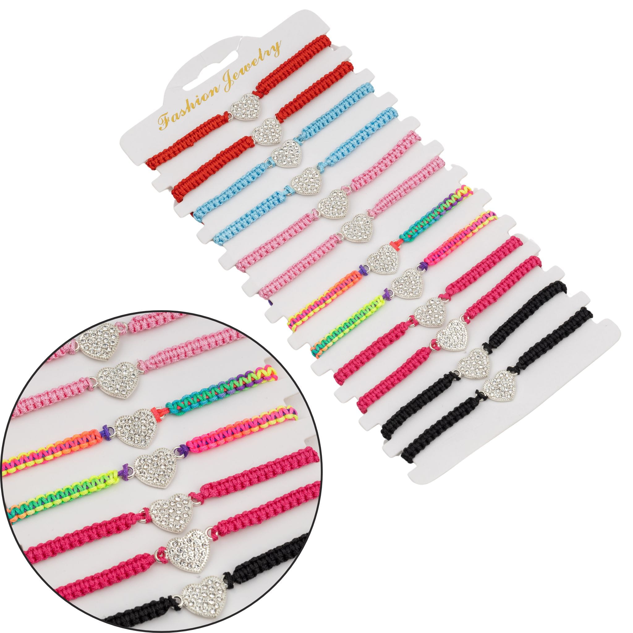 Zestaw bransoletek plecionych serce 12 szt B-1601