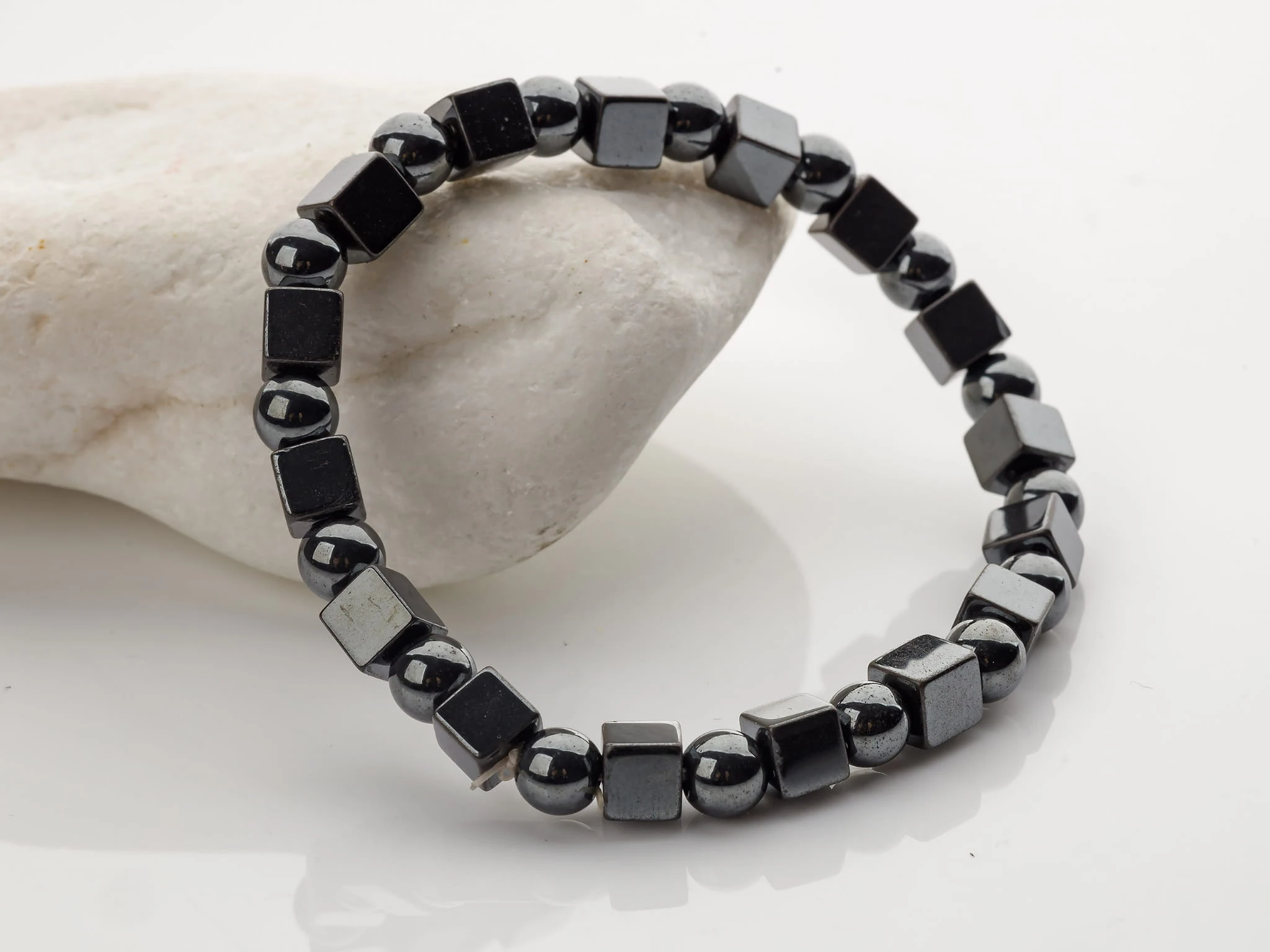 wzór: bransoletka z hematytowych koralików na gumce