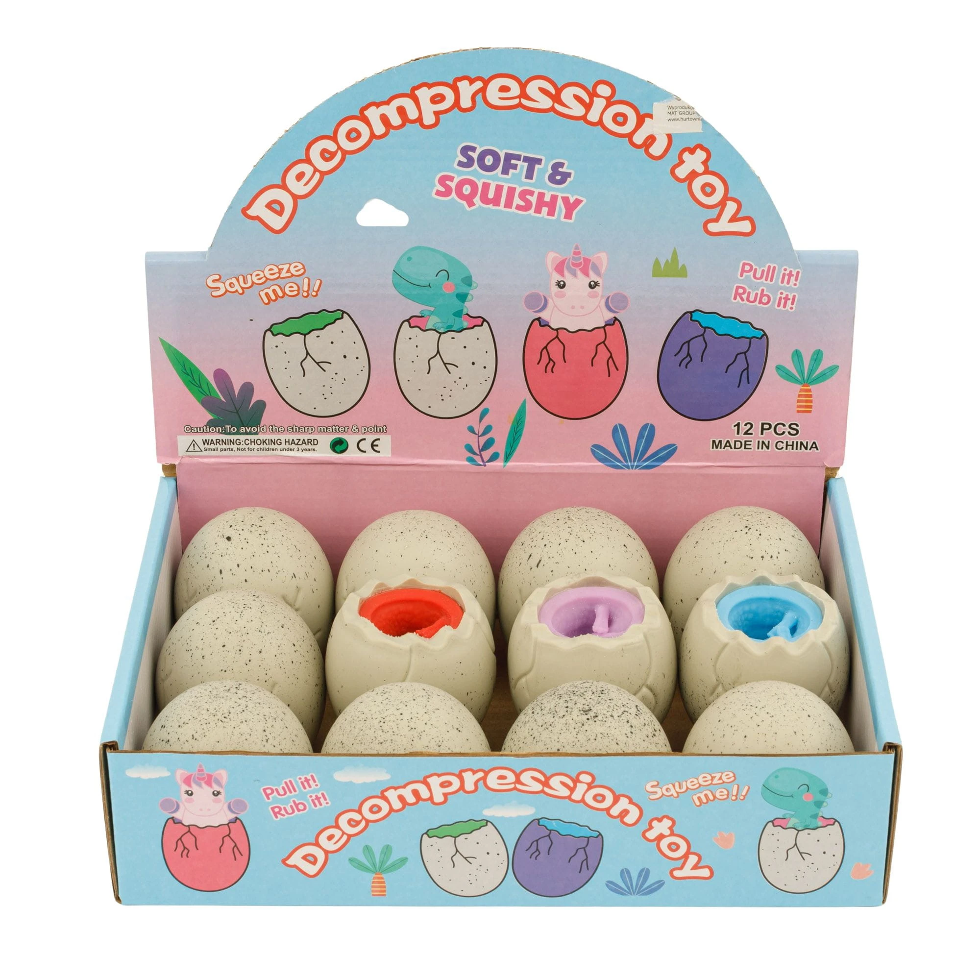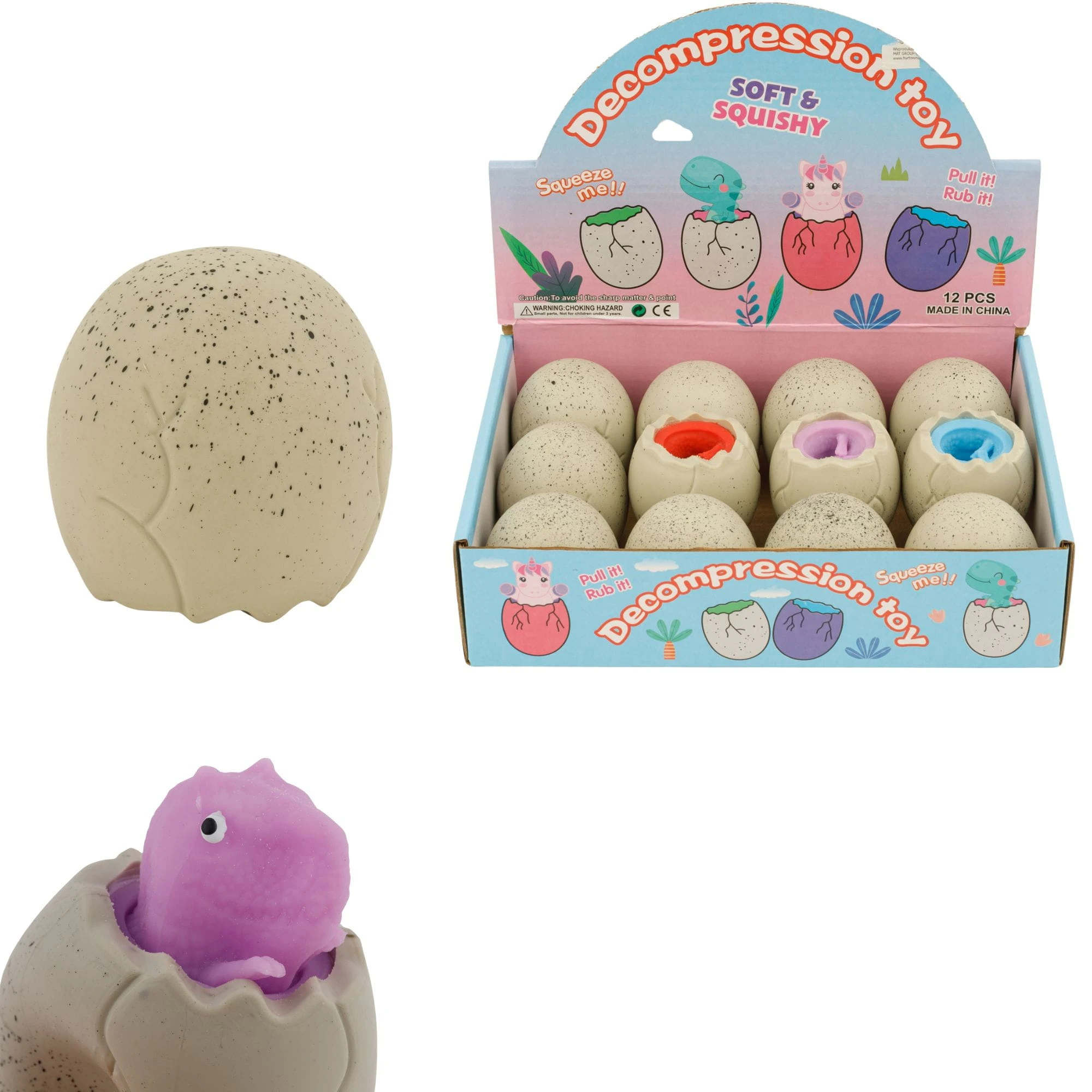 Zestaw gniotek jajo z dinozaurem 12 szt B-2717
