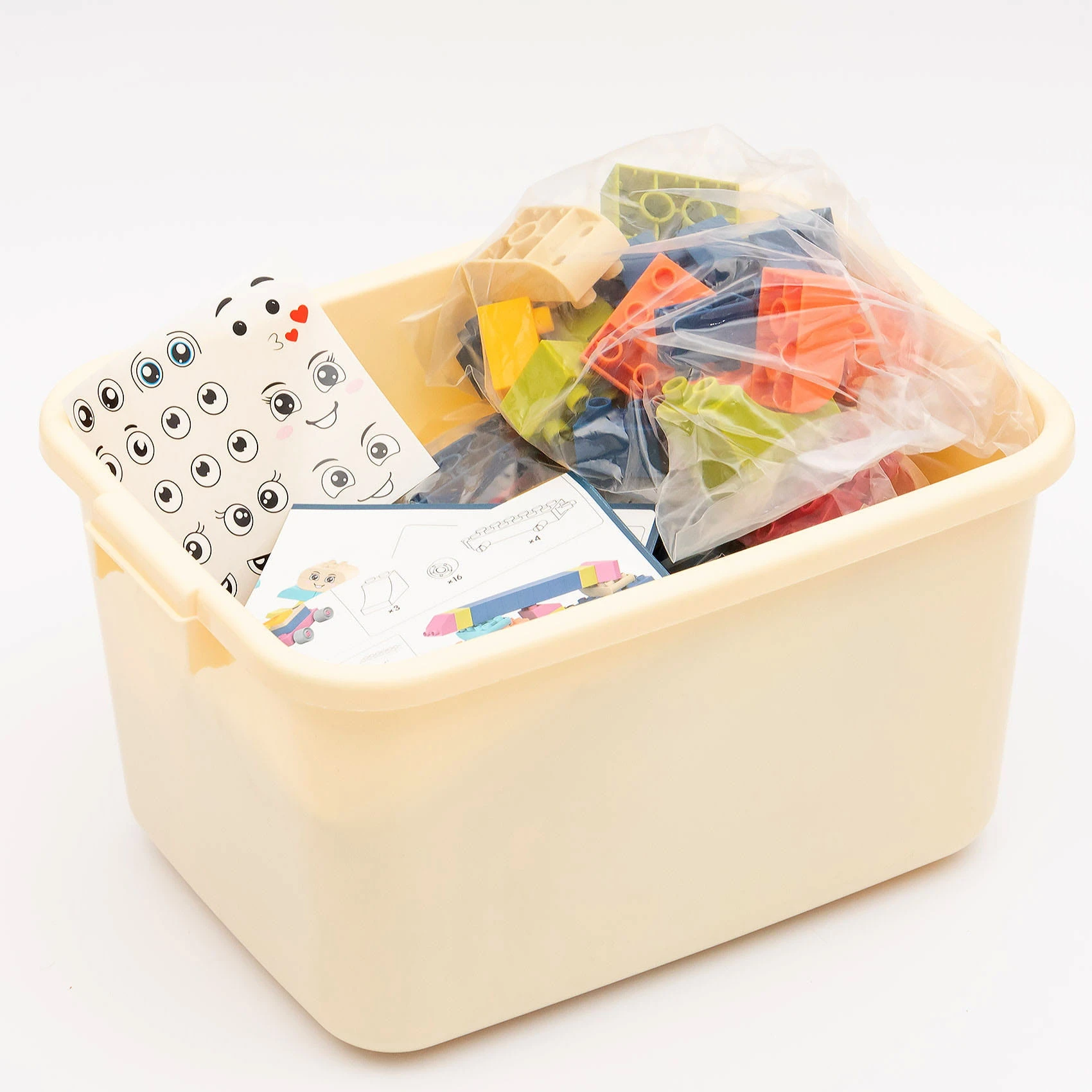 Ten duży, kolorowy zestaw składa się ze 151 elementów, co pozwala na budowanie kilku konstrukcji na raz, oraz zabawę w większym gronie rówieśników. Klocki zapakowane są w estetyczne pudełko z rączką które pozwoli zachować porządek w pokoiku po skończonej zabawie i świetnie nadaje się na prezent.