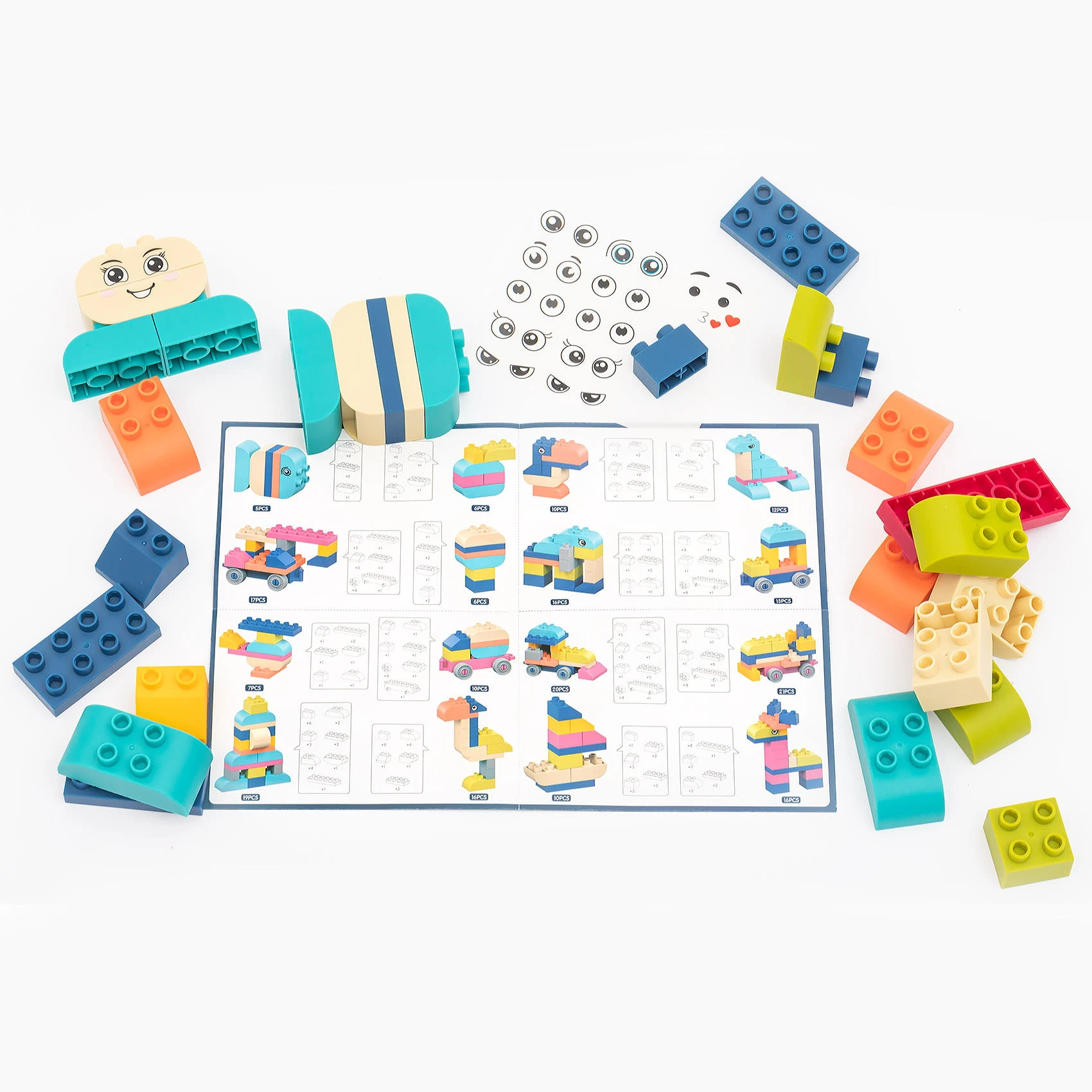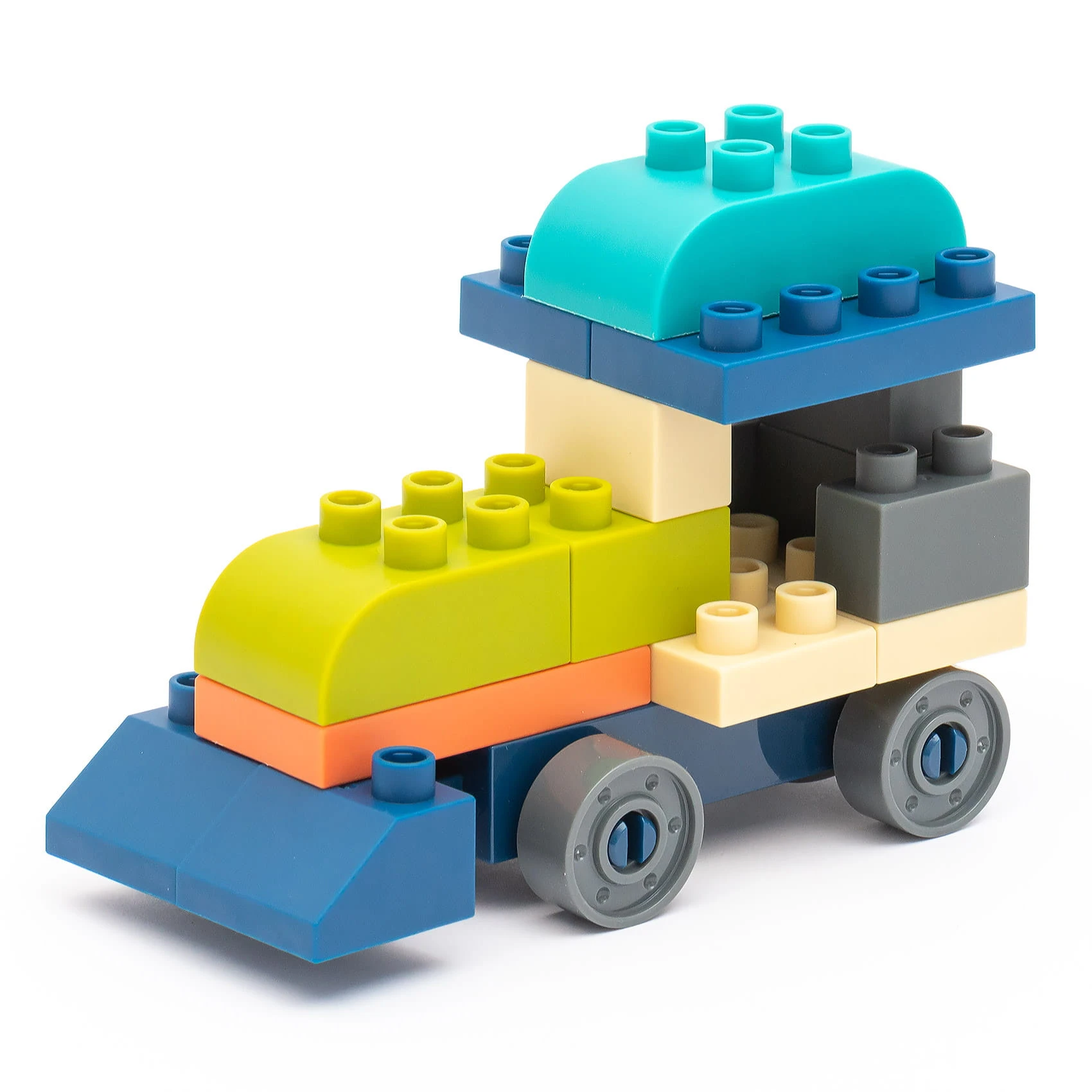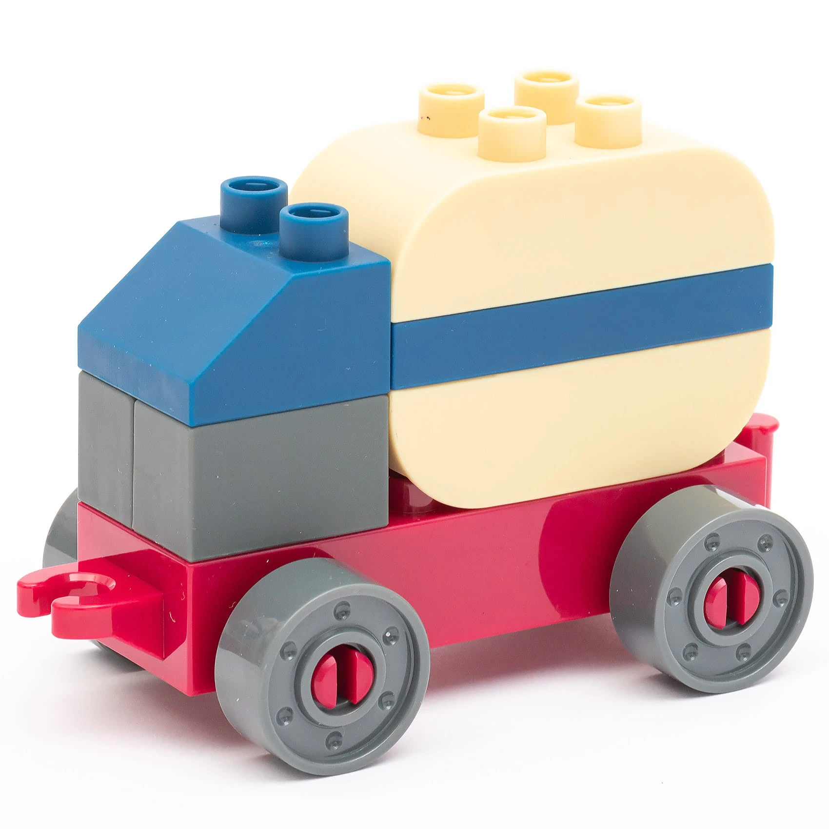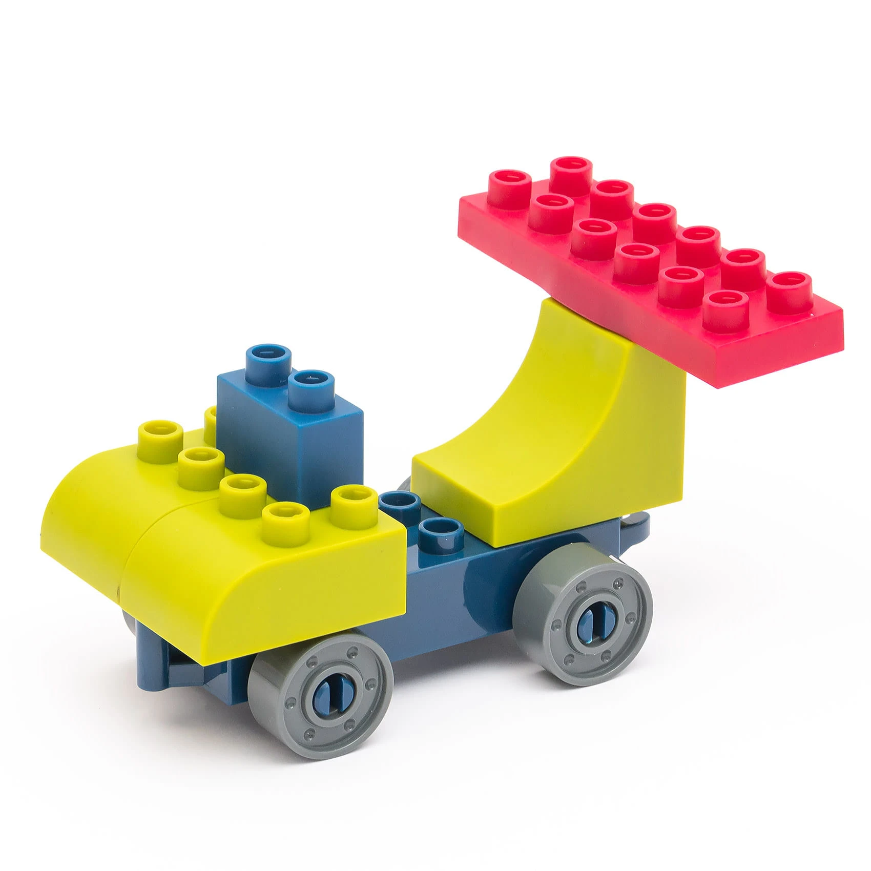 Do zestawu dołączone są klocki z kołami oraz obszerna instrukcja składania z ilustracjami dzięki temu możecie wybudować jeszcze więcej, a pomysły dziecka mogą zostać wzbogacone sugestiami z książeczki!