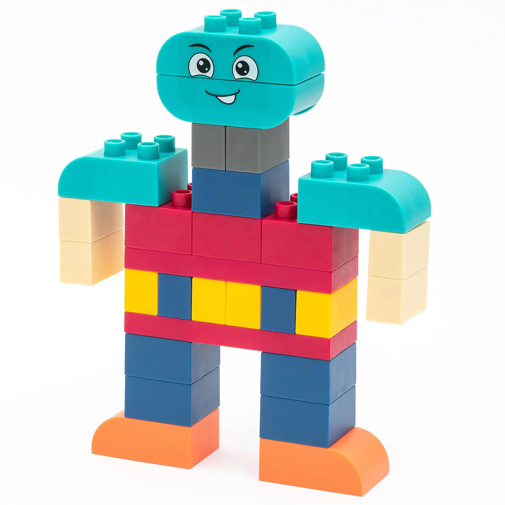 Nie tylko budynki i konstrukcje, stwórz postacie. Zestaw posiada naklejki z wyrazami twarzy które nadadzą wyjątkowych cech i ukażą nastroje zbudowanych przez Ciebie postaci. Po skończeniu budowania możesz bawić się i odgrywać scenki z nowymi bohaterami.