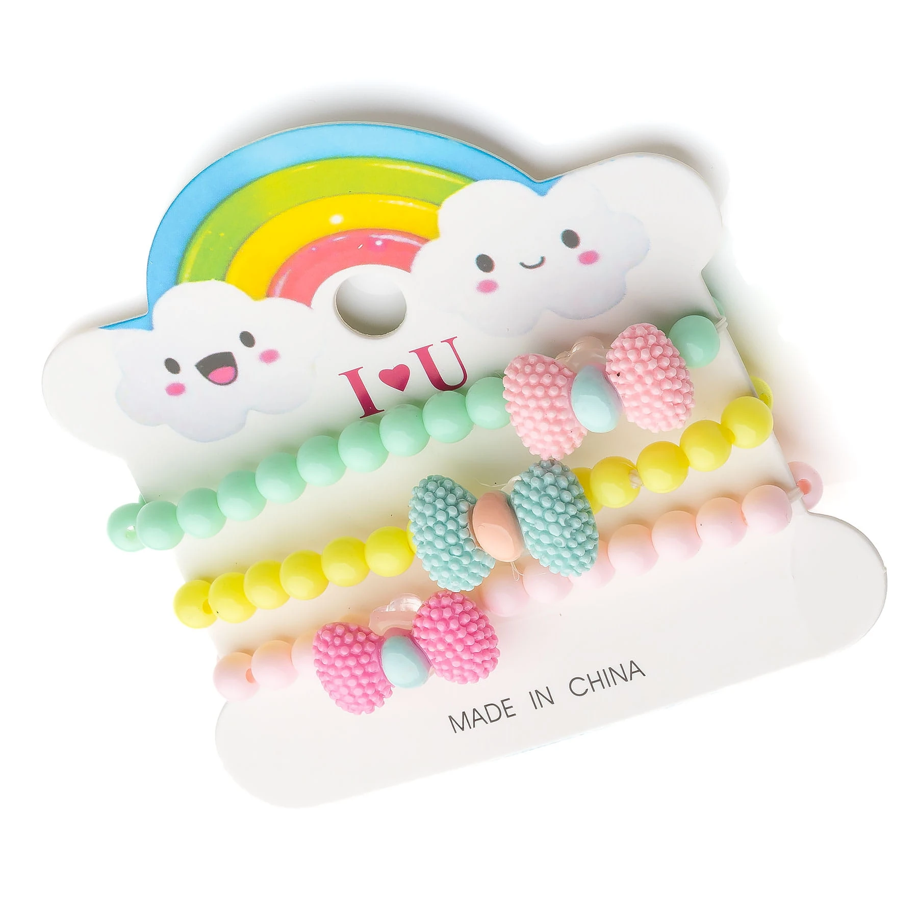 Zestaw trzech bransoletek z pastelowych koralików z kokardką - 12 blistrów B-2212